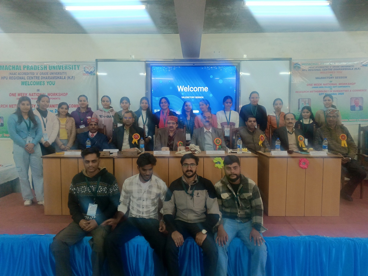 हिमाचल प्रदेश विश्वविद्यालय क्षेत्रीय केंद्र धर्मशाला में मानविकी एवं वाणिज्य विषयों पर आधारित छह दिवसीय राष्ट्रीय शोध कार्यशाला का आज समापन हुआ।