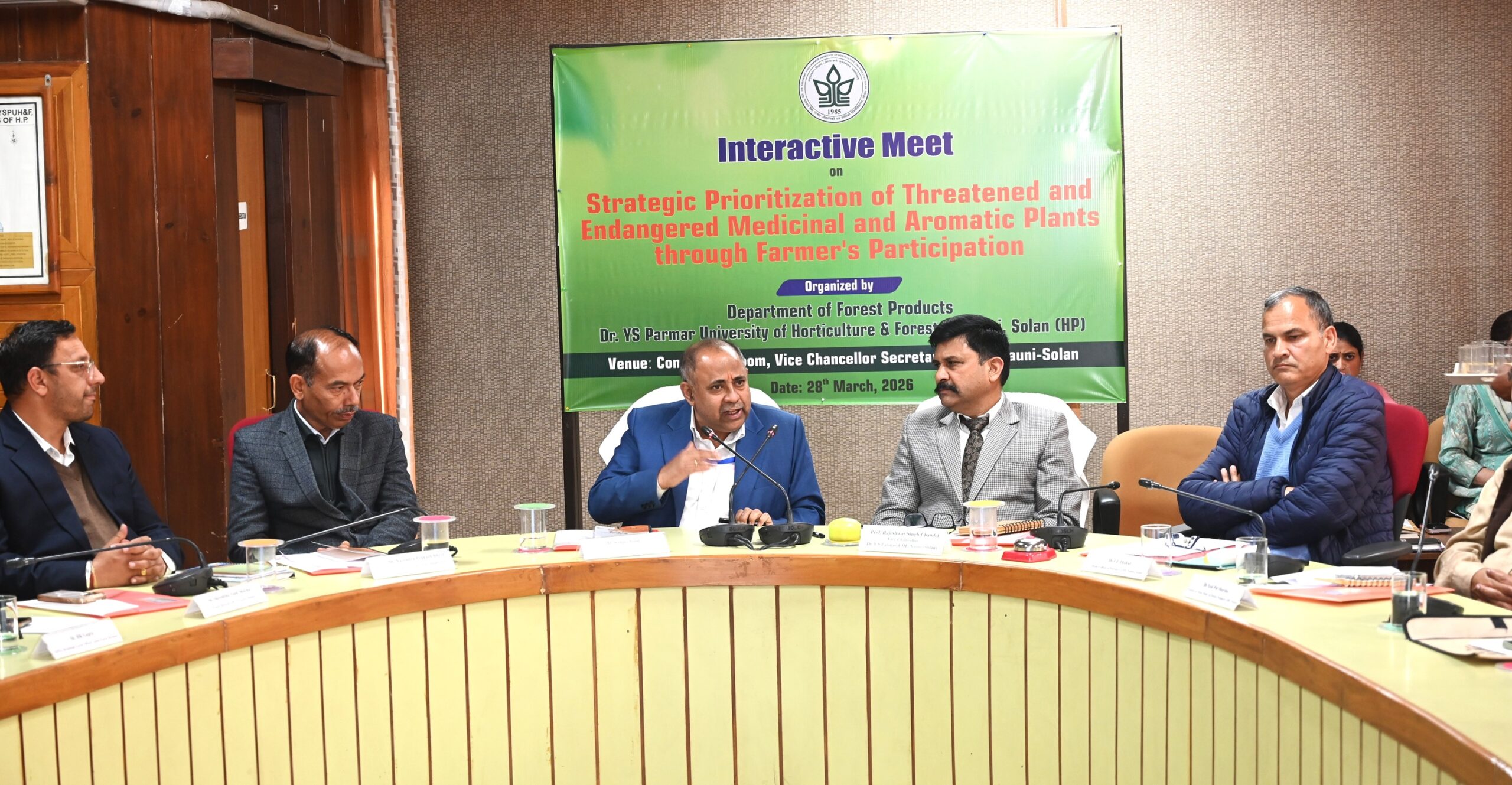 किसान सहभागिता के माध्यम से विलुप्तप्राय एवं संकटग्रस्त औषधीय एवं सुगंधित पौधों (MAPs) के रणनीतिक प्राथमिकता निर्धारण” विषय पर एक इंटरएक्टिव बैठक का आयोजन डॉ. यशवंत सिंह परमार औद्यानिकी एवं वानिकी विश्वविद्यालय, नौणी में राज्य वन विभाग के सहयोग से किया गया। वन उत्पाद विभाग द्वारा आयोजित इस कार्यक्रम में वैज्ञानिकों, शोधार्थियों, वन अधिकारियों तथा प्रगतिशील किसानों ने भाग लेकर हिमाचल प्रदेश में औषधीय एवं सुगंधित पौधों के संरक्षण, खेती और सतत उपयोग पर मंथन किया।